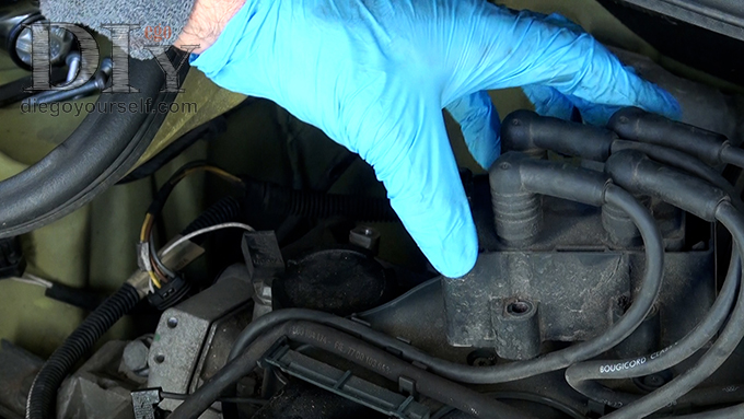 Sortez les fils haute tension qui vont à la bobine de leur clip de rétention sur le couvercle de routage :